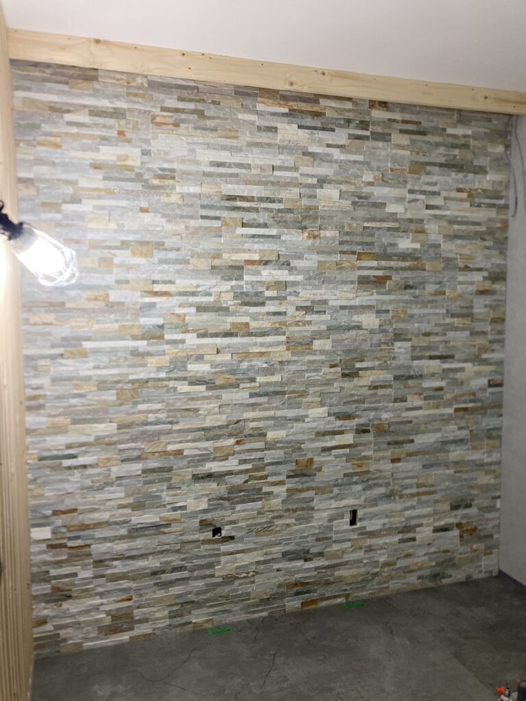 こんにちは!今回は天然木のウッドウォールをご紹介していきたいと思います!こちらも天然石のバンピーウォールに続いて、今、大変人気のデザインです!その施工事例の画像を載せて行きたいと思います!木材の太さ、